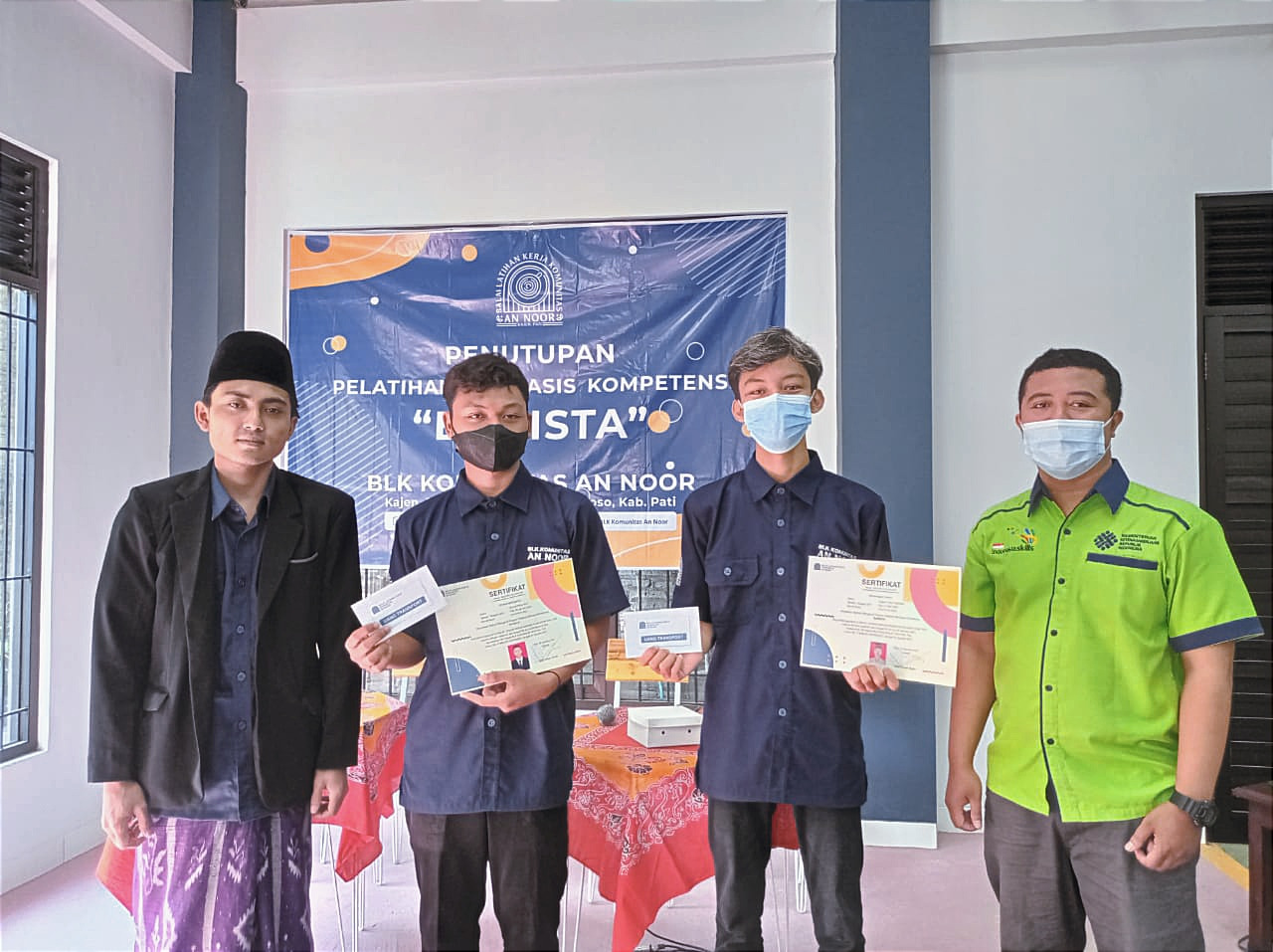 MARGOYOSO – Balai Latihan Kerja Komunitas (BLKK) An-Noor Kajen yang berbasis kompetensi Barista telah mengakhiri pelatihan, Selasa (24/8) lalu. Sedikitnya ada 16 peserta yang mayoritas lolos dalam pelatihan di BLKK yang berada di bawah naungan Yayasan An Noor tersebut. Uniknya, mayoritas peserta dalam pelatihan tersebut adalah para santri.