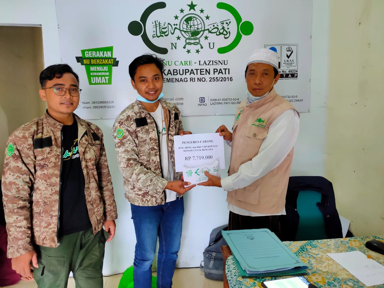 Setelah melalui beberap tahapan yang di koordinatori oleh rekan Wibowo, tepat pada tanggal 2 Februari 2020 seluruh donasi yang terkumpul di salurkan melalui LAZISNU Kab. Pati, salah satu Lembaga NU yang memiliki tupoksi di bidang penyaluran dana bantuan.