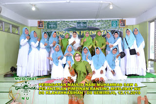 GEMBONG-Perimgatan Maulid Nabi Muhammad belum selesai. Semaraknya masih terdengar di berbagai daerah. Pengurus Anak Cabang Muslimat NU Kecamatan Gembong juga tidak mau melwatkan momen mulia ini.