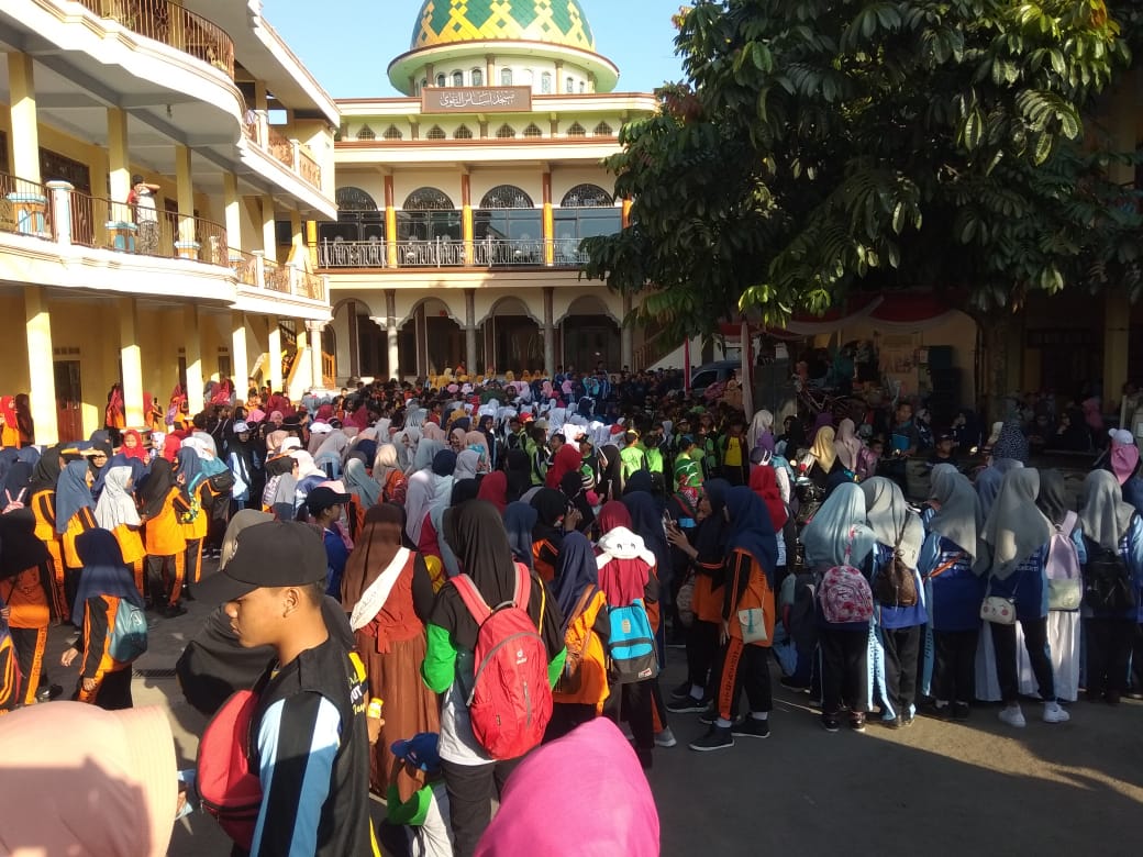 | Ribuan ora berkumpul untuk mengikuti jalan santai yang digelar oleh panitia peringatan tahun baru 1441 hijriyah yang digelar oleh Yayasan Ar-Raudloh, Pakis, Tayu |