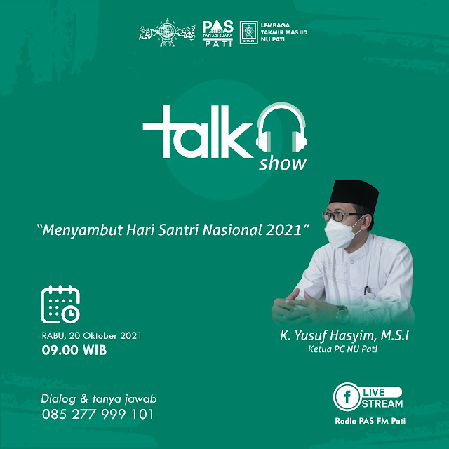 | Pamflet talk show Hari Santri 2021 yang menghadirkan K. Yusuf Hasyim, Ketua PCNU Pati |