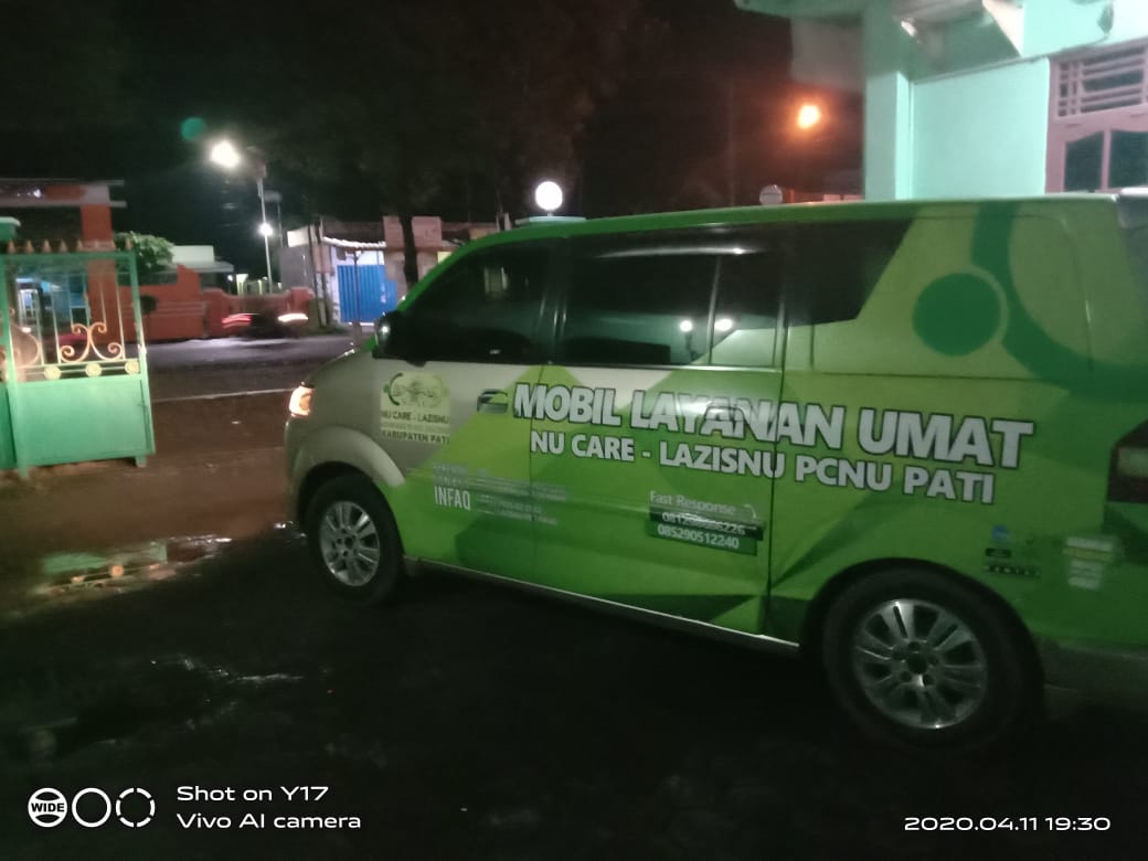 | Mobil layanan umat Lazisnu Pati bersiap mengantarkan paket sembako Minggu (12/4) pukul 05.00 WIB. pagi. |