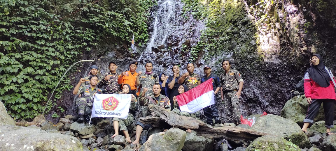| Aksi Banser Satkoryon Wedarijaksa di Air Terjun Rejenu paska ziarah di makam Syeh Syadzili dan melakukan pengibaran bendera di sana |