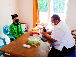 | Umar, Ketua PAC IPNU Wedarijaksa (kiri) sedang berdiskusi dengan Camat Setempat, Eko Purwantoro |