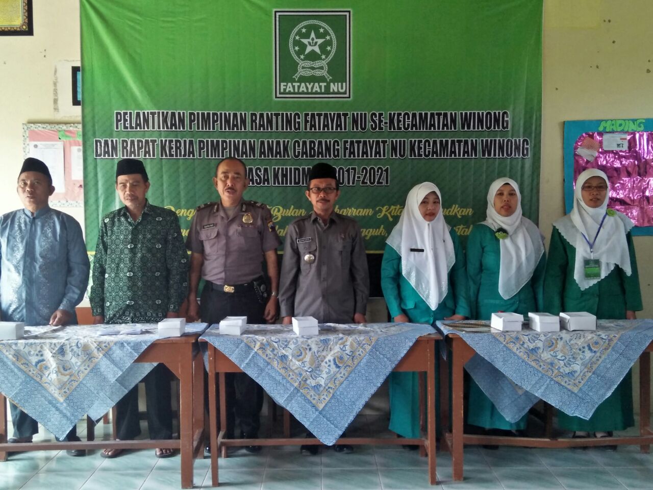 Pati.Pelantikan Pimpinan Ranting dan Rapat kerja Pimpinan Anak Cabang Fatayat NU Kecamatan Winong Masa Khidmad 2017-2021, acara tersebut bertempat di Aula Madrasah Tarbiyatul Banin Pekalongan Winong, 21/9 kemarin. Dengan menghadirkan tamu undangan yang meliputi Pimpinan Cabang Fatayat NU Pati, Camat Winong, Kapolsek Danranil, Ketua MWCNU Winong beserta Banom-banomnya, total keseluran yang menghadiri 185 orang. Sedangkan Pelantikan tersebut dilakukan langsung oleh Siti Nur Nugraheni. S. Pd Selanjutnya, tujuan dari pelantikan pengurus ini adalah untuk memperkuat struktur organisasi Fatayat NU sampai ke tingkat ranting, sehingga akan mempermudah koordinasi dan konsolidasi pengurus dan anggota dalam melaksanakan program kerja. Selain pelantikan juga diadakan dengan santunan yatama dari ranting-ranting sebanyak 15 yatama. Acara kemudian ditutup dengan Rapat Kerja Pimpinan Anak Cabang Fatayat NU kec Winong.