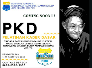 PATI-Pergerakan Mahasiswa Islam Indonesia (PMII) Komisariat Joyo Kesumo (Jokes) Pati kembali membuka pendaftaran Pelatihan Kader Dasar (PKD). Hal ini disampaikan oleh ketua panitia PKD, Agus Ulinnuha.