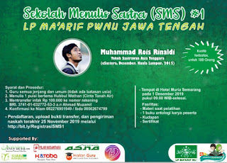 SEMARANG–Pengurus Bidang Diklat dan Litbang LP Ma’arif PWNU Jawa Tengah, di akhir tahun 2019 akan menggelar Sekolah Menulis Sastra (SMS) #1. Penanggungjawab acara, Hamidulloh Ibda, mengatakan bahwa kegiatan itu diperuntukkan guru dan umum dari semua unsur.