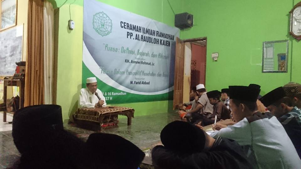 Pati. Pondok Pesantren Ar-Roudloh Kajen Margoyoso Pati mengadakan ceramah ilmiah untuk mengisi kegiatan pada bulan ramadhan, acara tersebut bertempat di aula Pondok Pesantren Ar Raudloh,Senin 2/6 kemarin.