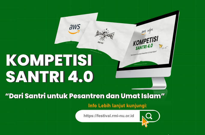 | Pamflet Kompetisi Santri 4.0 buah Kerja sama RMI NU dan Amazon Web Service. |