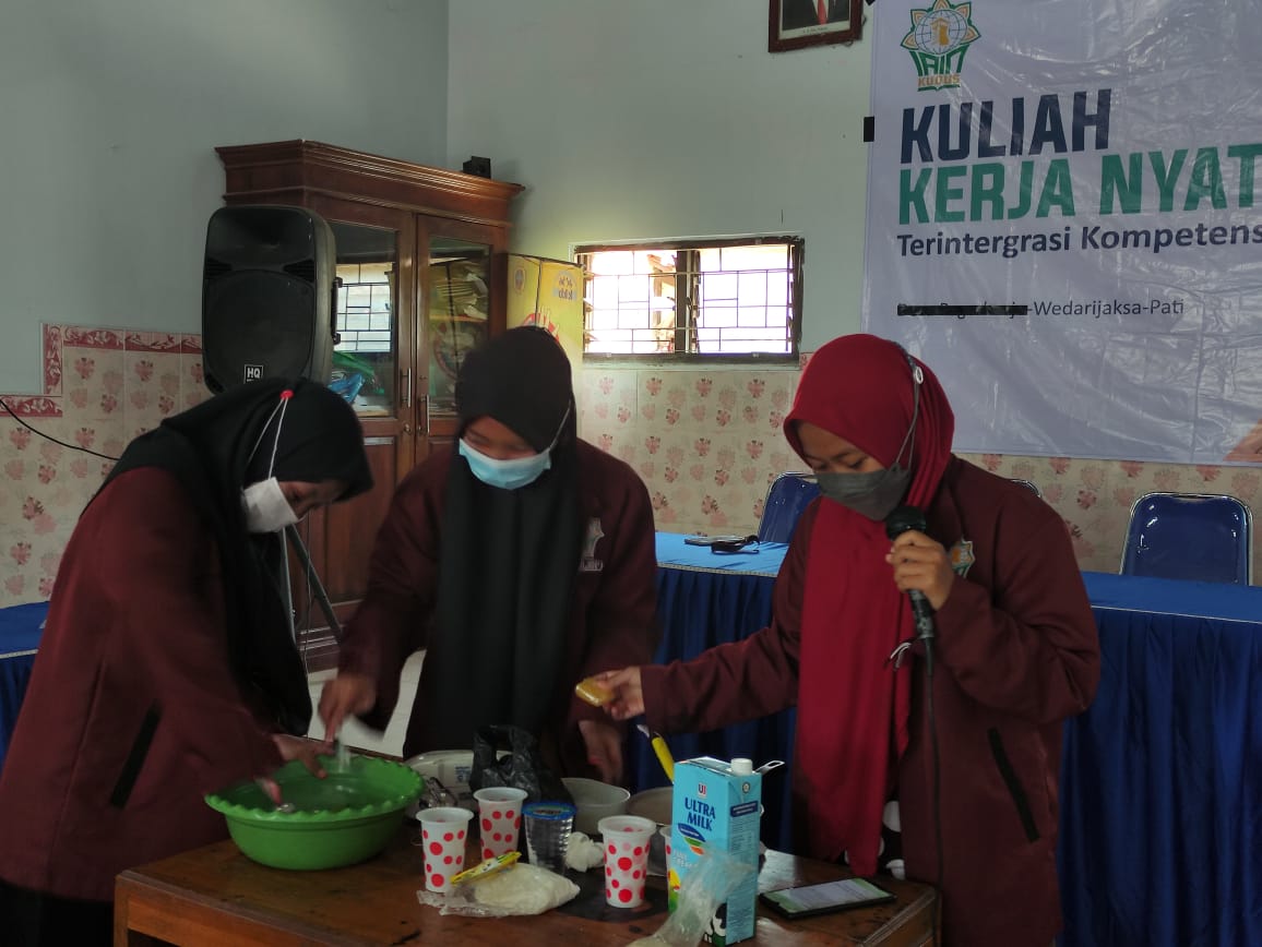 WEDARIJAKSA – Tim KKN IAIN Kudus di Kecamatan Wedarijaksa mengadakan kegiatan pelatihan pembuatan es krim sayuran pada hari Sabtu, (2/10) di Balai Desa Jetak.