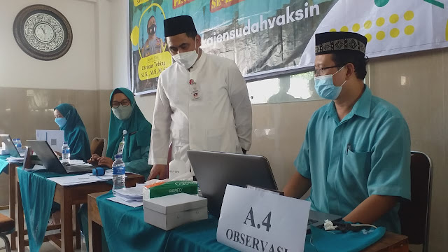 MARGOYOSO – Lima ribu santri di Desa Kajen, Kecamatan Margoyoso, Kabupaten Pati mengikuti vaksinasi, Senin (20/9).